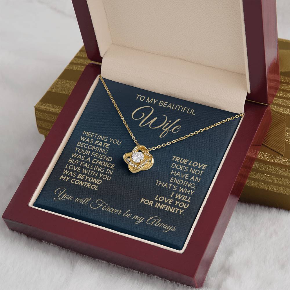 El mensaje dice: "Para mi bella esposa, conocerte fue el destino, convertirme en tu amigo fue una elección, pero enamorarme de ti estaba fuera de mi control. El verdadero amor no tiene final, por eso te amaré por el infinito. Lo serás por siempre. mi siempre"