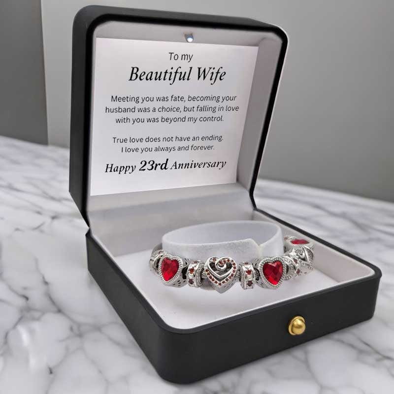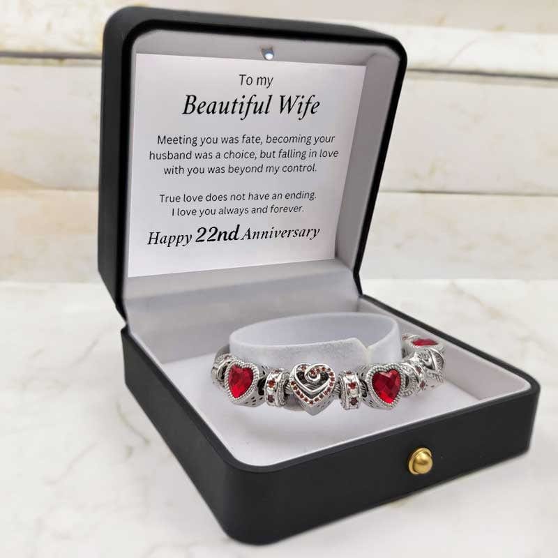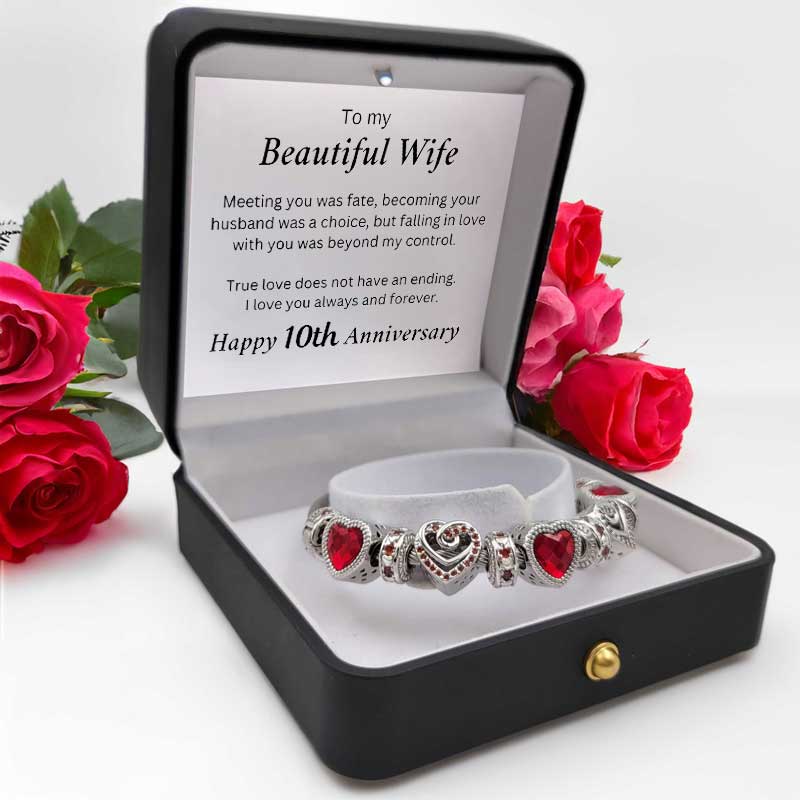 The To My Wife - Anniversary Bracelet is the perfect way to celebrate that special person you've decided to spend your life with. Let this exquisite bracelet and heartfelt message be an unending reminder of the everlasting love you have for your wife.