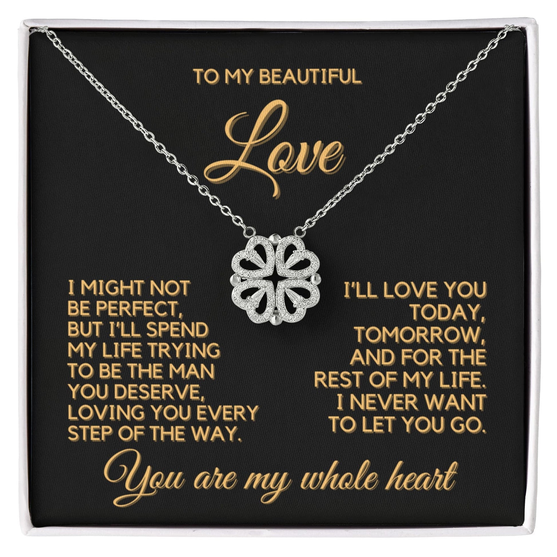 Message reads: "To my beautiful Love, I might not be perfect, but I’ll spend my life trying to be the man you deserve, loving you every step of the way. I’ll love you today, tomorrow, and for the rest of my life. I never want to let you go. You are my whole heart."